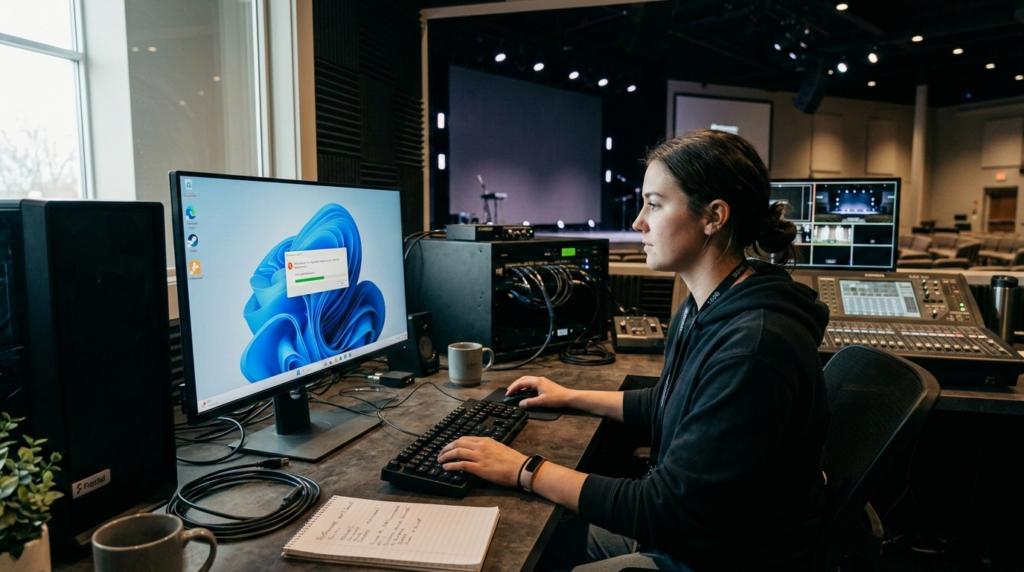 For mission-critical environments such as churches and live events, maintaining updated drivers, stable Windows builds, and properly configured hardware is essential. Preventative maintenance can reduce the risk of unexpected launch failures before important services or productions.